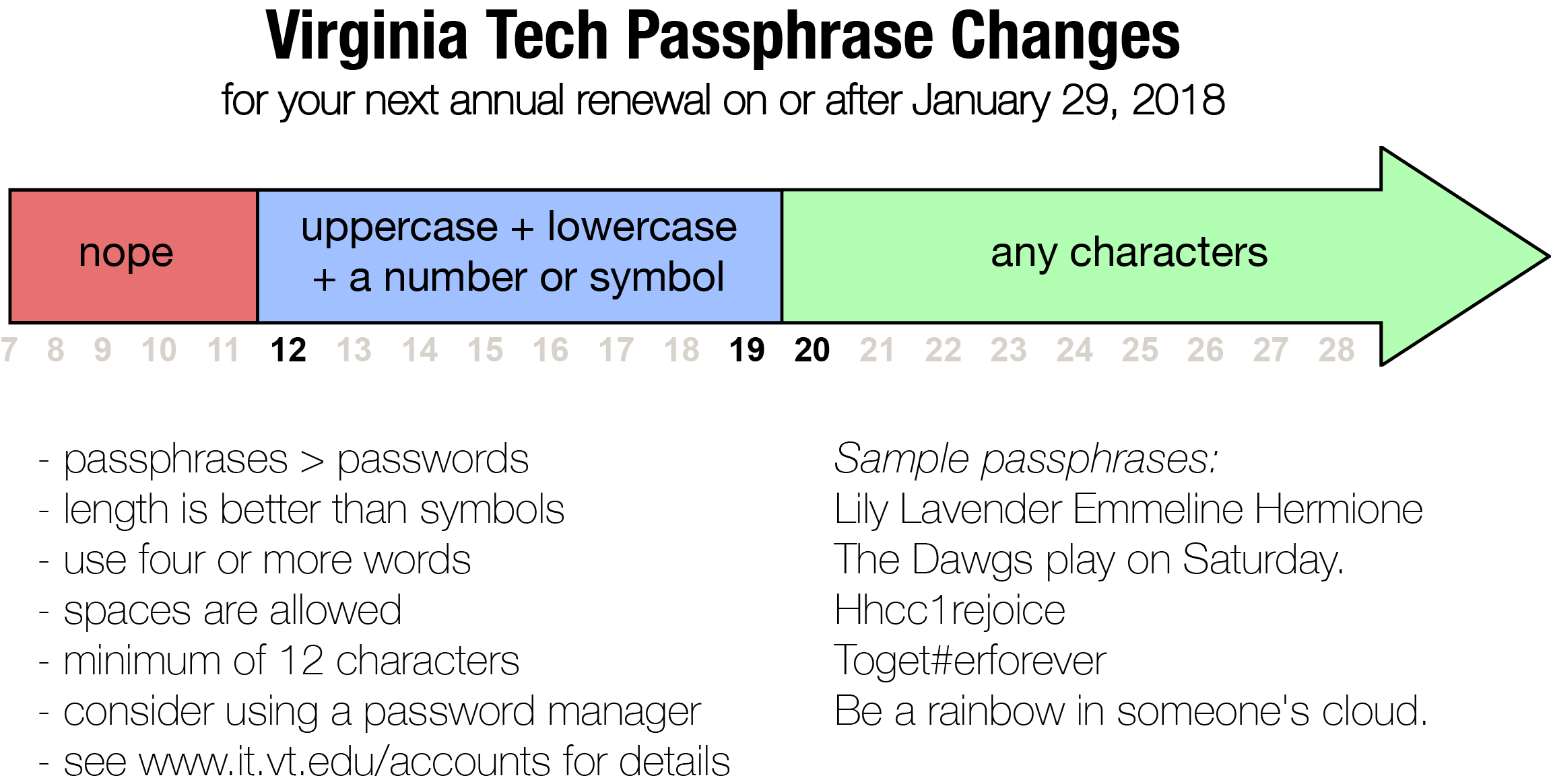 We adapted their guidelines. See the attached diagram which defines our rules. It's a variant of the Stanford password rules as well. -Randy Marchany VA Tech IT Security Office and Lab On Tue, Mar 13, 2018 at 5:00 PM, Thomas Dugas <dugast () duq edu> wrote: