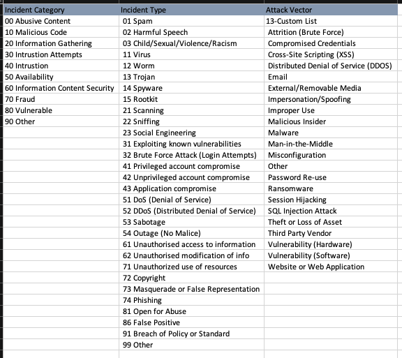 David, This is great! I’m intrigued in including vulnerability as a top-level category. It would be a great way to emphasize vulnerability management. I’d still like to have some way to classify any test. I’m thinking it would be a “type” under top-level, to be able to differentiate between a network pen-test from phishing simulation. And I also would like to classify investigations/efforts that turn out to be false positives or non-incidents. Again, I’m thinking it would be a type rather than at top-level category. Also, the enisa threat taxonomy also looks interesting. Jim *From:* The EDUCAUSE Security Community Group Listserv < SECURITY () LISTSERV EDUCAUSE EDU> *On Behalf Of *David Treble *Sent:* Thursday, February 20, 2020 3:29 PM *To:* SECURITY () LISTSERV EDUCAUSE EDU *Subject:* Re: Security incident categories This email originated from outside of Stevenson University. Use caution with links or attachments unless you know the content is safe. Hi Jim, I was recently working on something similar for our new incident handling database and was able to find good inspiration from this group. https://www.enisa.europa.eu/publications/reference-incident-classification-taxonomy <https://nam04.safelinks.protection.outlook.com/?url=https%3A%2F%2Fwww.enisa.europa.eu%2Fpublications%2Freference-incident-classification-taxonomy&data=02%7C01%7Cjbole%40STEVENSON.EDU%7C2102d3490a4045e0f36308d7b6439732%7C93599c7168554022bac5141d808346d1%7C0%7C1%7C637178273756749197&sdata=6E3apYXvczLYO45LwXA4VcgPrWwI%2BLqjTQB0uGQpizA%3D&reserved=0> There is a PDF you can download that contains references to other taxonomies such as MISP Project taxonomy. https://www.misp-project.org/taxonomies.html#_ecsirt <https://nam04.safelinks.protection.outlook.com/?url=https%3A%2F%2Fwww.misp-project.org%2Ftaxonomies.html%23_ecsirt&data=02%7C01%7Cjbole%40STEVENSON.EDU%7C2102d3490a4045e0f36308d7b6439732%7C93599c7168554022bac5141d808346d1%7C0%7C1%7C637178273756759193&sdata=HhlSmIbbodSathkFfpPgYwQdt9d8O0zY%2Bk1RWJVdnhY%3D&reserved=0> I created Major Categories and then aligned Sub-Types as well as adding an attack vector reference. I didn’t like the alpha sort in the picklists, so I used the numbering system which was a bonus since that allowed me to better match the related sub-type to the major category and add/remove more in the future if necessary. An example of a reported Laptop Theft would be: 60 Information Content Security – 61 Unauthorized access to information – Attack Vector: Theft or Loss of Asset Not perfect, since this could also be an Intrusion, Availability or Information Gathering incident, but we can clarify this with Category/Sub-Type descriptions. I’m not sure how well this will translate up to Executives outside IT just yet….pretty fresh approach for us. Executive report data tends to be reformatted anyway into selected pie charts, graphs, etc… I don’t think we will be generating direct reports from these tracking categories. David Treble University of Manitoba [image: A close up of text on a white background Description automatically generated] -- *+++++++++++++++++++++++++++++++++* *David Treble, CISM | IT Security Coordinator Information Security & Compliance* *E3-640 EITC | University of Manitoba* *David.Treble () umanitoba ca <David.Treble () umanitoba ca> | 204.474.8340* *Information Security starts with You!* *+++++++++++++++++++++++++++++++++* *From: *The EDUCAUSE Security Community Group Listserv < SECURITY () LISTSERV EDUCAUSE EDU> on behalf of "Jim A. Bole" < jbole () STEVENSON EDU> *Reply-To: *The EDUCAUSE Security Community Group Listserv < SECURITY () LISTSERV EDUCAUSE EDU> *Date: *Thursday, February 20, 2020 at 2:00 PM *To: *"SECURITY () LISTSERV EDUCAUSE EDU" <SECURITY () LISTSERV EDUCAUSE EDU> *Subject: *[SECURITY] Security incident categories ISO good list of security incident categories. I am looking for something that works for formal IR Plans and can establish helpful metrics, especially for leadership outside of infosec/IT. I like the federal guidelines ( https://www.us-cert.gov/government-users/reporting-requirements <https://nam04.safelinks.protection.outlook.com/?url=https%3A%2F%2Fwww.us-cert.gov%2Fgovernment-users%2Freporting-requirements&data=02%7C01%7Cjbole%40STEVENSON.EDU%7C2102d3490a4045e0f36308d7b6439732%7C93599c7168554022bac5141d808346d1%7C0%7C1%7C637178273756759193&sdata=fU3Okf4RtYIOiMPUreo7ovNwkdnR6zjvt6x5q3ktf6s%3D&reserved=0>) but I don’t think they cover some categories I think are important: - Phishing attacks, especially BEC incidents with no technology compromise, just social engineering. Think gift card scams. - Data breaches, especially those requiring formal notification (HIPAA, PCI, etc.). I think those types of incidents require their own category for tracking. - Loss/theft of equipment. I’ve typically had to track these, especially when internal drives weren’t encrypted. Not sure if this one is still relevant. I’d be interested if anyone has anything better. I modified the fed categories a bit and came up with: Category 0 - Test/Exercise Used for any approved test or exercise, such as internal or external network penetration tests. Category 1 - Data Theft Any attempted or successful destruction, manipulation, or disclosure of sensitive, confidential or proprietary information. Includes any incident requiring breach notification or resulting in financial loss (Business Email Compromise - BEC). Does not include most typical phishing attacks/attempts (Category 5). Category 2 - Denial of Service An attack that *successfully* prevents or impairs the normal authorized functionality of networks, systems or applications by exhausting resources. This activity includes being the victim or participating in the DoS. Category 3 - Compromised technology asset Any incident the results in the compromise of a technology asset: host, network device, account, service etc. Includes malware-infected hosts and account compromise due to successfully crede