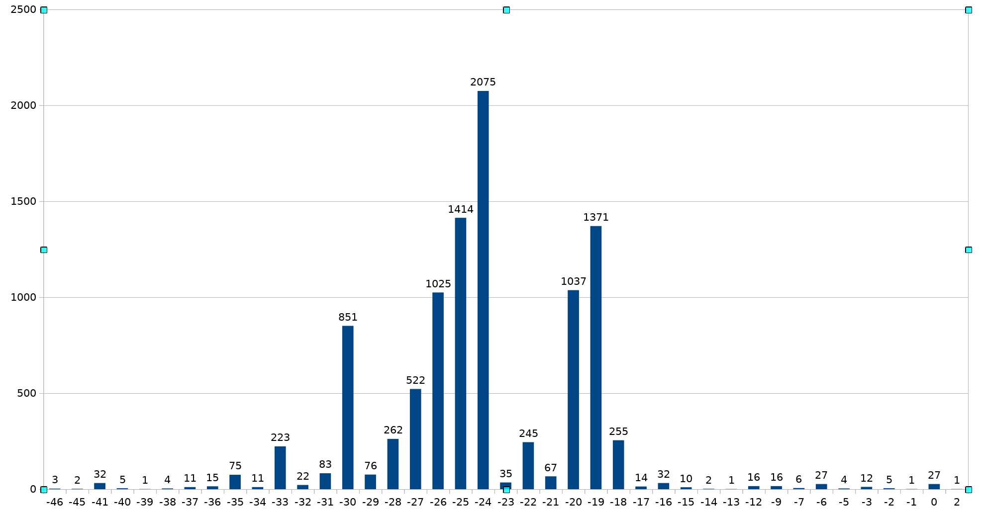TX_Count calib[] = {{-46, 3}, {-45, 2}, {-41, 32}, {-40, 5}, {-39, 1}, {-38, 4}, {-37, 11},