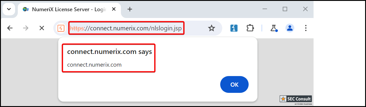 SEC Consult SA-20241211-0 :: Reflected Cross-Site Scripting in Numerix License Server Administration System Login