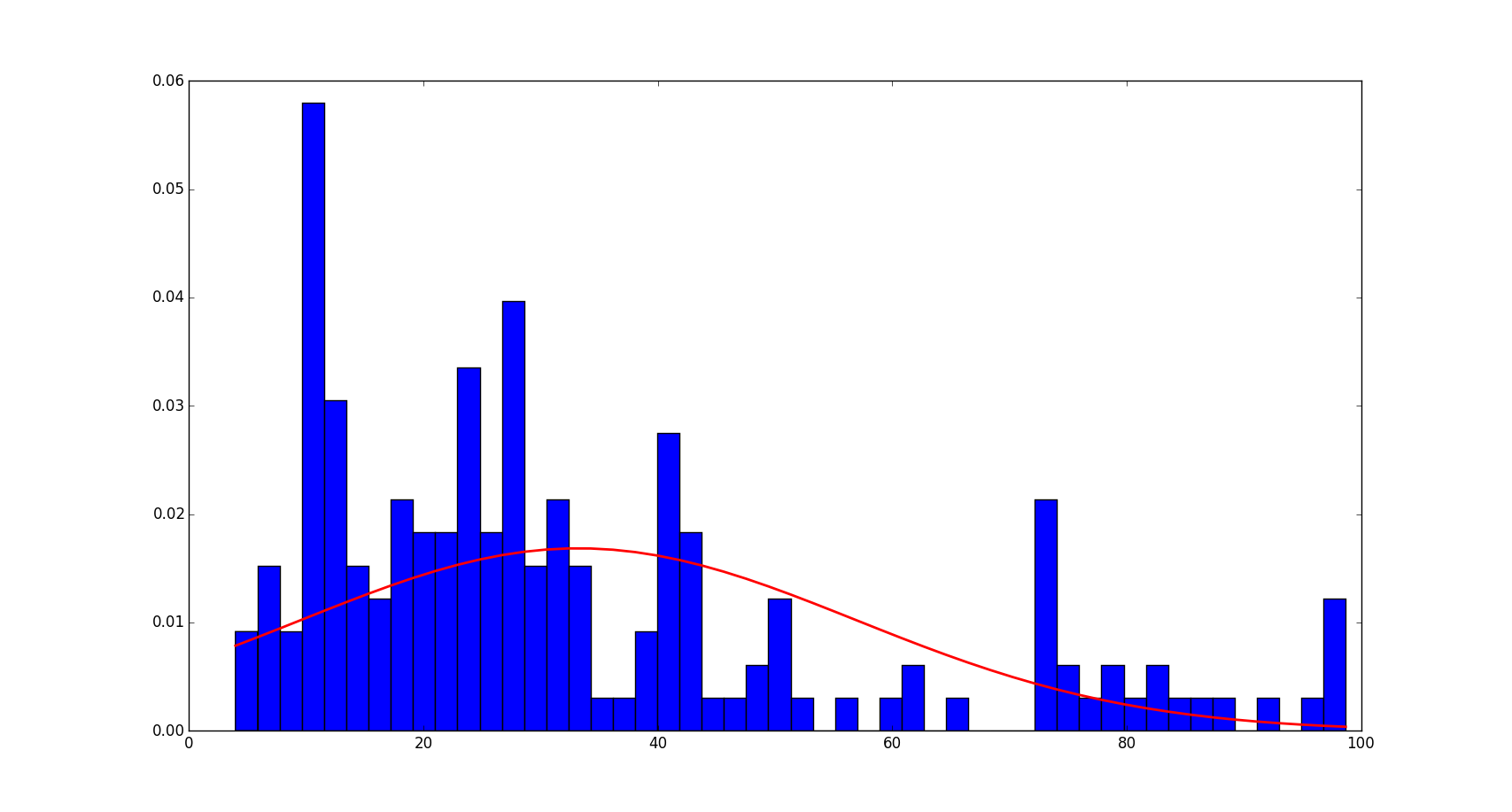 Hello list, After some discussions on IRC, we decided to check what would make a suitable value for the novelty threshold, provided the imputation feature is included into the training stage. In order to achieve this, I wrote a script which would train a classifier 90 times (there are 90 OS groups in the training set), each time excluding one group. Then, for each of the prints in the excluded group, classification would be performed and the novelty score saved. By finding the minimum of these scores, the idea was to be able to find a new value for the threshold. The results were the following: *) without imputation, the smallest score is 3.95506283351 obtained by the second print in group "Equinox CCM4850 ..." (index 14, 0-based). *) with imputation, the smallest score is 4.68074027082 obtained by the only print in group "HP OfficeJet 8500 printer" (index 40). Both of these values are below the current threshold so I decided to look a bit deeper to find a good value for a new threshold. I made two histogram plots of the scores. While both plots have a similar mean, the bins from the imputed scores follow the distribution more closely. Based on the plot for the imputed scores, I would suggest a new novelty threshold of 25, which is roughly just before the highest bins start. I am attaching the script I used to perform the calculations, two python pickle files with the results and two images of the plots. Best regards, Alexandru Geana alegen.net On 06/30, Alexandru Geana wrote: