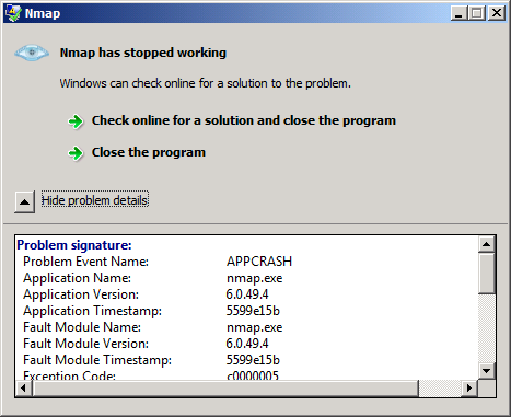 - Re: can't remember last time NMAP ran without crashing steve (Sep 19)