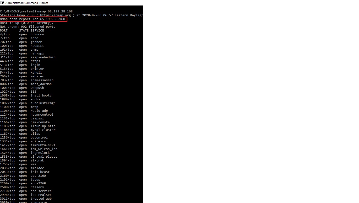 I have come across a case where, if you open port 443 on a public facing interface, nmap will report dozens of other open ports on that host. If you then close port 443, nmap cannot detect the host at all. I have replicated on multiple hosts running both Ubuntu and Windows Server OS. Attached are the results of an example nmap scan on a machine with a single port open (443), the results of which show dozens of other ports open. Also attached are a port probe using grc.com ShieldsUp service, the results of which show only port 443 open, as expected. Just checking to see if anyone is aware of this behavior and if so what is the cause? Thanks! Shaun Michelson | Director, Information Technology | Apple Hospitality REIT Ph: 804.727.6339 | smichelson () applereit com<mailto:smichelson () applereit com> www.applehospitalityreit.com<http://www.applehospitalityreit.com/>