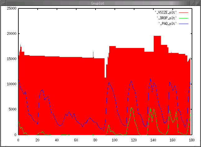 Hi all, I've been doing tests with Snort and I got the graphic attached. We can see traffic received in packets per second with blue line, Snort droped pps with green line and Snort total VM size in kilobytes. X axe represents time in hours (a little more than one week). First, why droped packets are so different in between days with similar traffic? (I get droped packets with a script that compares received packets from the interface with Snort processed packets, from kill -USR1). Second, why Snort vsize is like this?. I thought it bears relation to traffic received, but it doesn't. Thanks. -- Emilio Mira