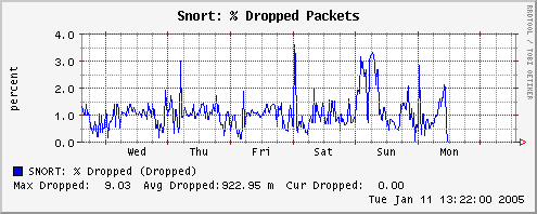 Below are some graphs from one of my snort boxes: The box is a dell 1750 server, 2.8GHZ, 1GIG memory, 2 x 36GB SCSI 15k hard disks, built in dual NetXtreme BCM5704 Gigabit Ethernet adapters. Running SuSE 9.1, MySql, Apache, Snort, Barnyard. The box is listening to a span port on a CISCO Catalyst 4006. The big change in the drop rate happened Monday when I upgraded libpcap from 0.8.1 to 1.0 using mmap mode. I'm in the process of upgrading libpcap on my other snort boxes. I can post the stats for them when they're available if anyone is interested. But, the other boxes don't have GIGE cards in them, yet. Barry