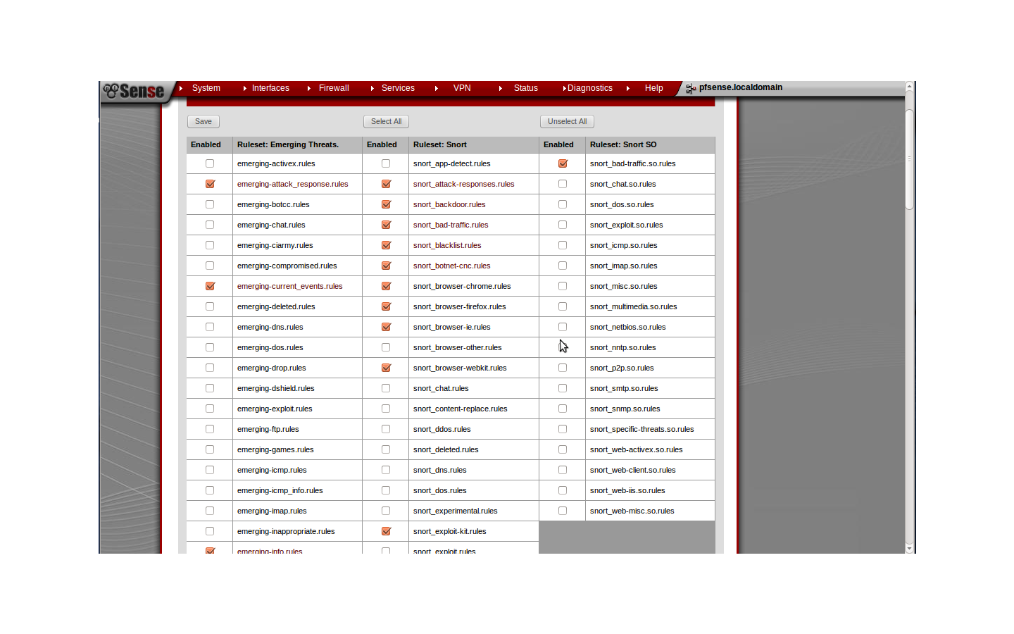 Hi, Here are a few screenshots I made of my home pfsense box of snort (I have changed some rule settings for the screenshots to show more critical stuff which will require less tuning than some other categories you don't want to block on in threshold.conf. The other thing you can do is have it write to an external database (i.e have mysql point to another snort database on another host and use a web interface like snorby to look at the alerts. Not great in a home environment and a large environment you are likely to have dedicated snort/monitoring boxes but great. As I said a few negatives like not remembering specific rules you have disabled (categories are fine) and you are stuck with the options it gives you in the GUI but it is more than enough and the best snort implementation I have seen in any opensource UTM before you get to some of the other features and packages. Hope that is more helpful with screenshots. Kevin On 28 September 2012 07:12, Pratik Narang <pratik.cse.bits () gmail com> wrote: