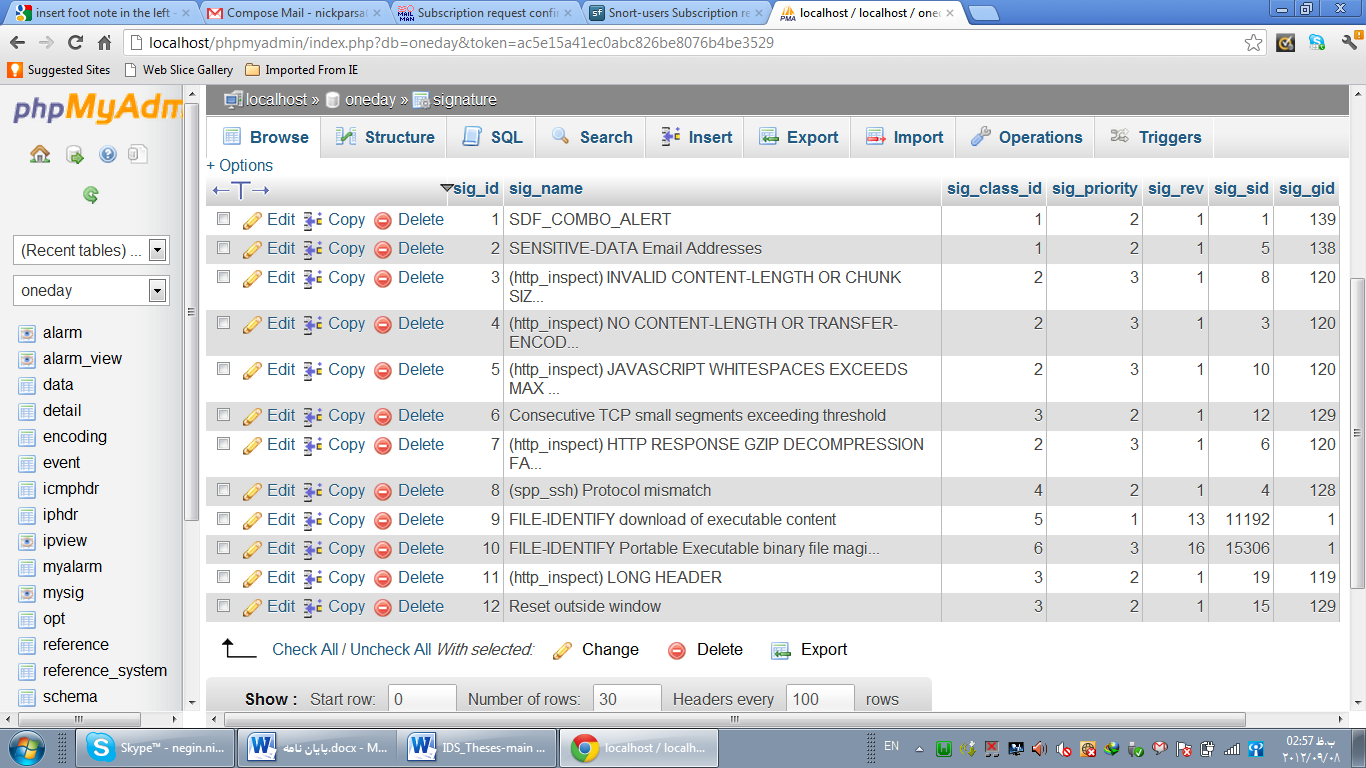 You want us to teach you how to be a Security Analyst? 1. Look at the attacks from the DARPA dataset (they must be described somewhere, somehow?) 2. Grep for the rule that fired in you rules file and see what it was looking for in the network traffic. 3. Review all the links associated with the rule. 4. Correlate all your information. 5. Profit. Simple! From: Negin Nickparsa [mailto:nickparsa () gmail com] Sent: Thursday, August 09, 2012 3:43 AM To: snort-users () lists sourceforge net Subject: [Snort-users] false positives Mit lincoln laboratory and snort signatures hello Dear Snort users I tested the darpa dataset 1999 with snort,I wrote an algorithm to cluster alarms and now I need to know which of the alarms are false positives so as to update the snort rules manually.this is just my thesis and I know the snort usually has exact rules. I want to look at the attacks of darpa and if snort Identifies an attack which darpa didn't have it assume the alarm as false positive. I couldn't match the signatures of snort with attacks of darpa dataset would you please tell me how to map the signatures to attacks? I mean is there any file in snort which I can find the descriptions? Thanks in Advance. [cid:image001.png@01CD7935.CE96A860]