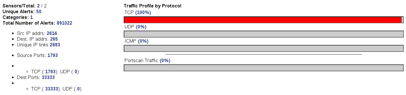 Snort Enthusiasts, I have deployed a Snort with BASE as a GUI. I have attached the BASE Main screen on this e-mail. If you cant see this jpg I have also upload to this site http://servicos.cafecomchips.com.br/Novo/Upload/Exibir_Foto.php?foto=b34243fef3.png My doubt is about something in base main screen. As you can see all my traffic is TCP, I haven't any alerts for port scanner. Or even I don't have any UDP traffic what is very stranger since there are DNS query going out the interface that snort is listenning. What can explaint it? Further more I have ran port scanner against this snort and it seems that it did not catch it* *This snort was deployed on a Firewall machine and I ran the port scanner in the same interface that snort is listenning, from a outside machine.