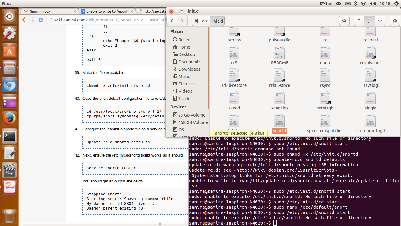 hello , i use this command sudo /etc/init.d/snortd start to start snort, and this file is exist but when i run it can not start snort and says this: sudo: unable to execute /etc/init.d/snortd: No such file or directory snort make me crazy. attached image show above explanation. thanks for any help