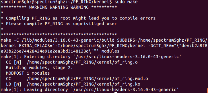 Is there a particular order the modules need to be configured. I tried ./configuring different modules but I am receiving several errors... do you know if there is a specific guide on configuring all the modules that I could follow? [cid:image003.png@01D0BBD5.7A826B20] From: Y M [mailto:snort () outlook com] Sent: Friday, July 10, 2015 12:32 PM To: Davison, Charles Robert; waldo kitty Cc: Avery Rozar; snort-users Subject: RE: Snort PF_Ring Installation If you get no errors are generated at the end then it should be ok. This is only for the kernel module. There are modules/libraries that also need to be installed to have PF_RING functional. As I mentioned before, there is the lib, pfring-daq-module, and drivers (if you want to install them). For each module, you need to go to its respective directory and install it. In the case of the PF_RING daq module, you should do something like: cd /PF_RING/userland/snort/pfring-daq-module and then autoreconf -ivf ./configure make make install The above should install the PF_RING daq modules into /usr/local/lib/daq. After the above is done, if you ls -l /usr/local/lib/daq, you should see something similar to this (note the last two lines): daq_afpacket.la daq_afpacket.so daq_dump.la daq_dump.so daq_netmap.la daq_netmap.so daq_pcap.la daq_pcap.so daq_pfring.la daq_pfring.so ________________________________ From: cdaviso1 () vols utk edu<mailto:cdaviso1 () vols utk edu> To: wkitty42 () windstream net<mailto:wkitty42 () windstream net>; snort () outlook com<mailto:snort () outlook com> CC: Avery.Rozar () i-techsupport com<mailto:Avery.Rozar () i-techsupport com>; snort-users () lists sourceforge net<mailto:snort-users () lists sourceforge net> Subject: RE: Snort PF_Ring Installation Date: Fri, 10 Jul 2015 18:03:48 +0000 This is what I get with sudo make... so maybe just make will work...?[cid:image001.png@01D0BBD5.674A38D0] From: Davison, Charles Robert Sent: Friday, July 10, 2015 12:02 PM To: Davison, Charles Robert; waldo kitty; Y M Cc: Avery Rozar; snort-users () lists sourceforge net<mailto:snort-users () lists sourceforge net> Subject: RE: Snort PF_Ring Installation This is where I am not now. PF_Ring Download Instructions 1. sudo apt-get update 2. sudo apt-get upgrade 3. sudo apt-get install libnuma-dev 5. git clone https://github.com/ntop/PF_RING.git 6. cd PF_RING/kernel 7. sudo make install [cid:image002.png@01D0BBD5.674A38D0] 10. sudo insmod ./pf_ring.ko 11. cd ../userland 12. sudo make install From: Davison, Charles Robert [mailto:cdaviso1 () vols utk edu] Sent: Friday, July 10, 2015 11:40 AM To: waldo kitty; Y M Cc: Avery Rozar; snort-users () lists sourceforge net<mailto:snort-users () lists sourceforge net> Subject: Re: [Snort-users] Snort PF_Ring Installation Ok so your saying this might work as long as I can verify it places the daq file in /user/local/lib/daq PF_Ring Download Instructions 1. sudo apt-get update 2. sudo apt-get upgrade 3. sudo apt-get install libnuma-dev 5. git clone https://github.com/ntop/PF_RING.git 6. cd PF_RING/kernel 7. sudo make install 10. sudo insmod ./pf_ring.ko 11. cd ../userland 12. sudo make install -----Original Message----- From: waldo kitty [mailto:wkitty42 () windstream net] Sent: Friday, July 10, 2015 11:33 AM To: Davison, Charles Robert; Y M Cc: snort-users () lists sourceforge net<mailto:snort-users () lists sourceforge net>; Avery Rozar Subject: Re: Snort PF_Ring Installation On 07/10/2015 01:17 PM, Davison, Charles Robert wrote: