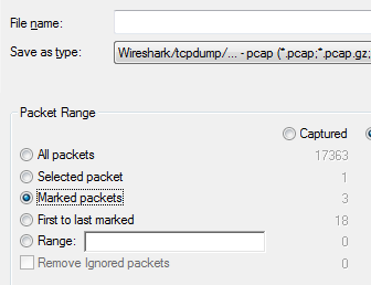 You can always save just the marked packets. File -> Export and then choose Marked packets: [image: Inline image 2] Bastiji