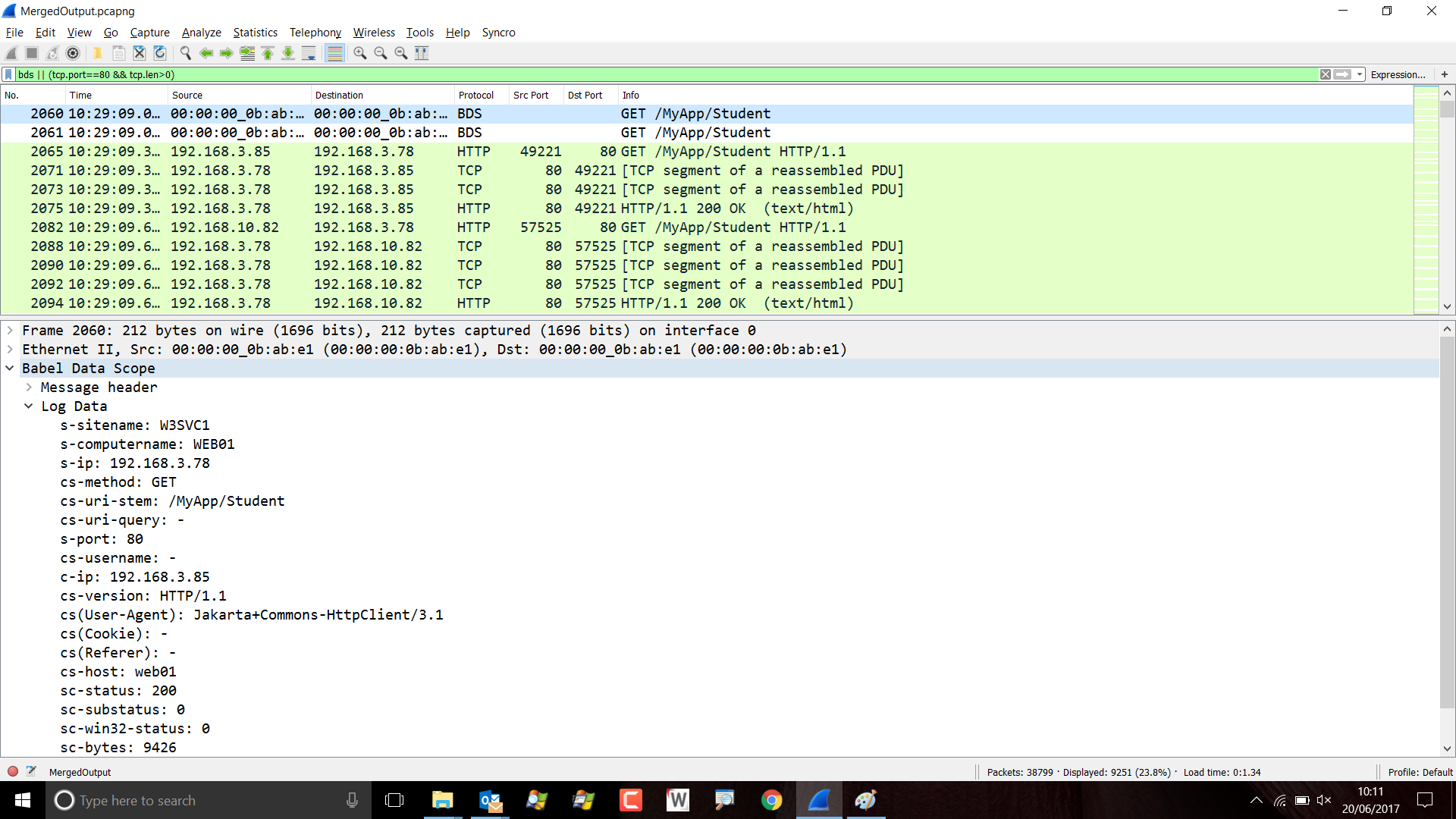 Hi Guy, The new block idea sounds good. Just to explain further why I think this would be a useful feature. Bear in mind that this is a demo and I accept your point on block types. In the screenshot attached you can see IIS web log data merged with packet data. Imagine that the packets were HTTPS rather than HTTP; you wouldn't be able to see the content in the packets but you can get a view of at least some of the content in the IIS log entries. There are other data types that could be included. For example, it's possible to export Microsoft Sysinternals Process Monitor trace entries to CSV. This could be merged with network trace data to enrich it. Best regards...Paul -----Original Message----- From: Wireshark-dev [mailto:wireshark-dev-bounces () wireshark org] On Behalf Of Guy Harris Sent: 19 June 2017 17:54 To: Developer support list for Wireshark <wireshark-dev () wireshark org> Subject: Re: [Wireshark-dev] Adding support to Wireshark for CSV, TSV and SSV data types On Jun 19, 2017, at 3:06 AM, Paul Offord <Paul.Offord () advance7 com> wrote: